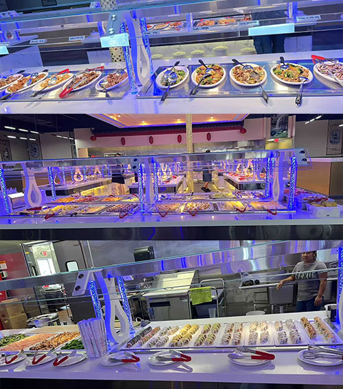 Explore our extensive buffet, featuring a variety of flavors to suit every taste. Enjoy fresh sushi rolls, steaming bowls of noodles, savory stir-fries, succulent seafood, and a host of other Asian specialties. Don’t forget to try our salads, sides, desserts, and seasonal offerings.